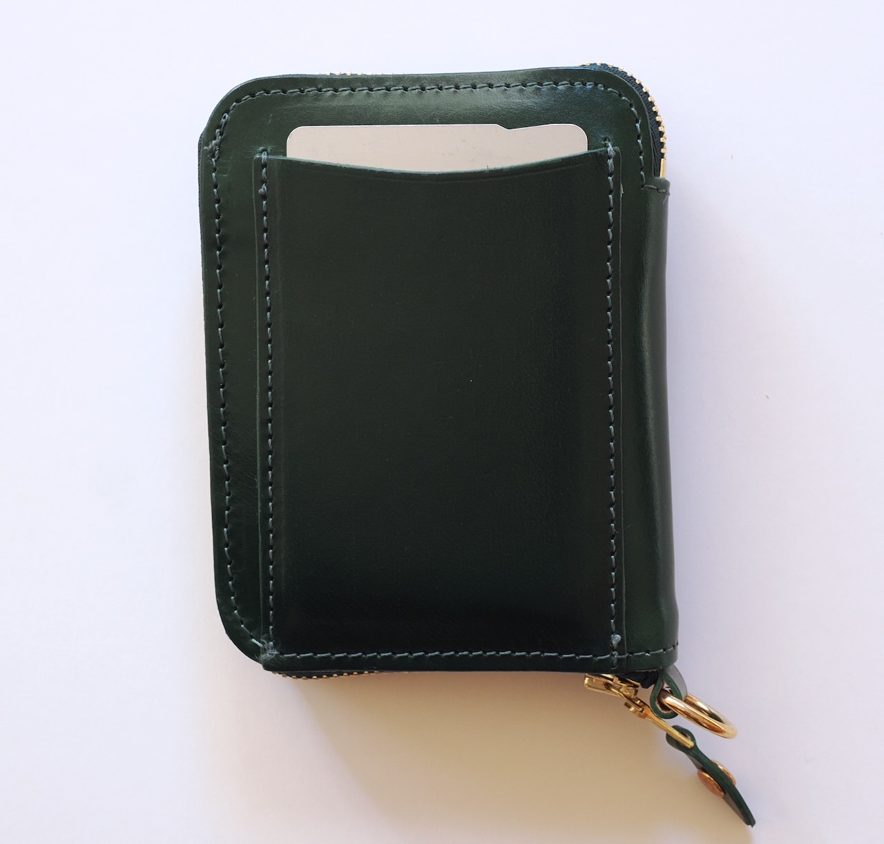 ・「スモールジップ・ウォレット」は手のひらサイズ。タテ11cm×ヨコ8.5cm×厚さ1.9cm。カード入れ5、外に1、コインポケット、札入れ2室(ここにもカードが入ります)、Dリング、全6色、44000円。