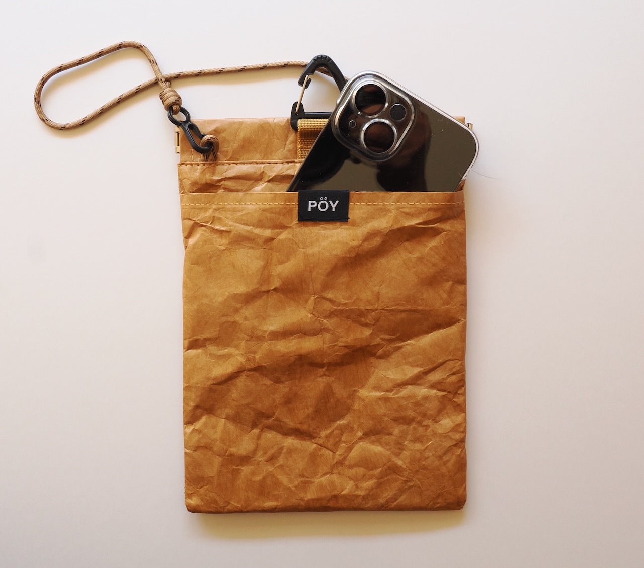 ・ポケッタブル・トラッシュ・ポーチ『POY』。サイズは20cm×14.5cm。入口はスプリングが付いていて、ピタッと閉まります。ポリエチレン製。ロゴや色などバリエーションは豊富。2530円。アウトポケットがあるので、ティッシュペーパーやポリ袋、マスクを入れても可。